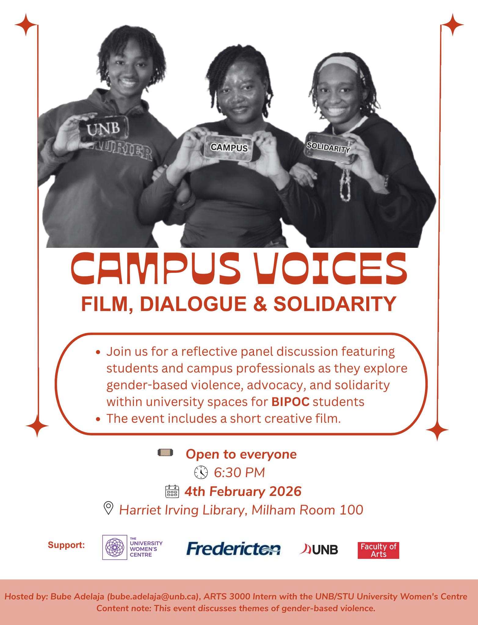 Bube Adelaja is a student completing an Arts internship with the UNB/STU University Women’s Centre.