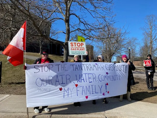 Mount Allison Religious Studies Professor Barb Clayton from the Protect the Chignecto Isthmus Coalition presented LeBlanc with a petition signed by 130 scientists and academics opposing the gas plant and suggesting alternatives such as renewable energy sources combined with battery energy storage.