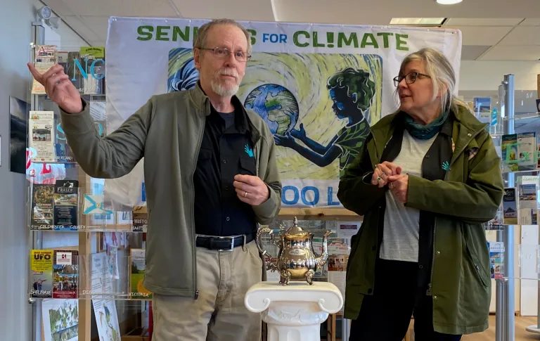 After the march, people gathered at Café Tintamarre in Sackville’s Visitor Information Centre for a tea party and climate chat.