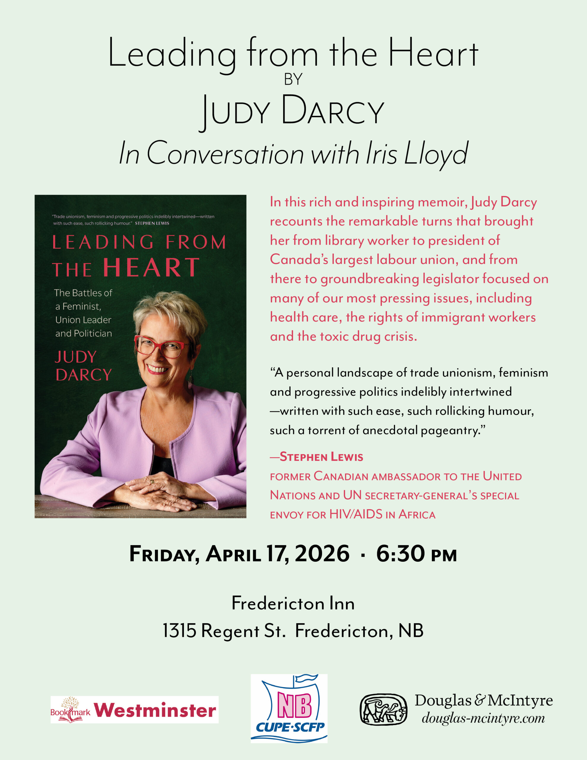 Judy Darcy in Fredericton: Leading from the Heart book talk