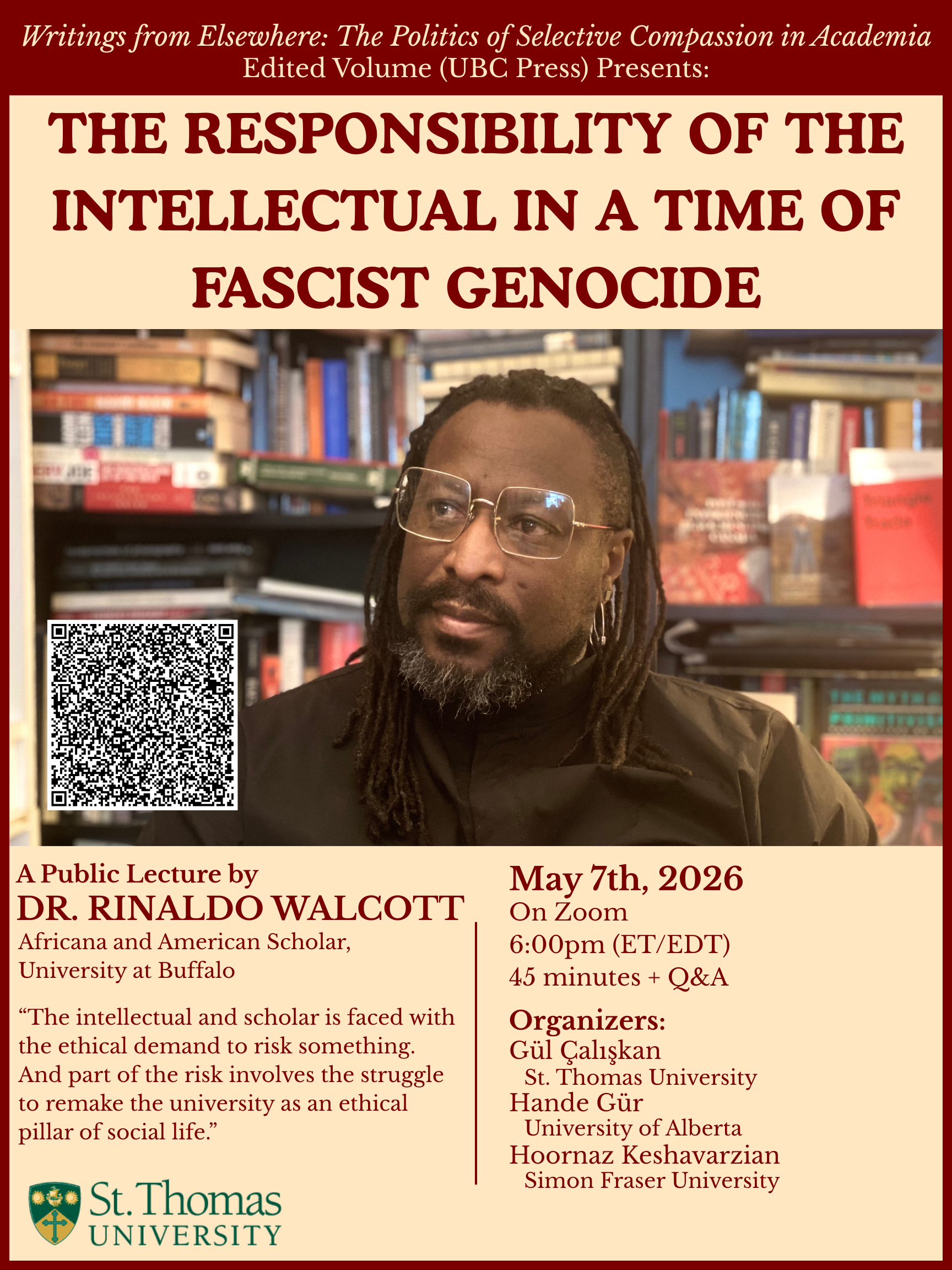 Public Lecture by Dr. Rinaldo Walcott: The Responsibility of the Intellectual in a Time of Fascist Genocide Delivered
